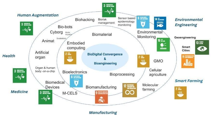 Policy Horizons Canada. Exploring Biodigital Convergence: What happens when biology and digital technology merge? Policy Horizons, 2019, p. 10. https://horizons.gc.ca/en/2020/02/11/exploring-biodigital-convergence/