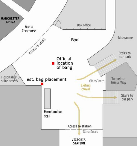 The MEN report adds that “The jurors were told horrific details of the life-changing injuries suffered by some of the 359 people.” Strictly speaking, therefore, the only evidence the report offers of a TATP shrapnel bomb having been detonated in the City Room are tales by an unspecified number of unidentified people regarding life-changing injuries. In forensic terms, this does not trump the primary empirical evidence adduced by Hall.